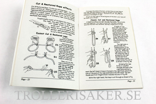 Packed within its 5.5" x 8.5" size, 48 printed pages with 193 illustrations, are step by step instuctions for 42 effective tricks you can perform with rope, including Appearing and Vanishing Knots, Cut & Restored Rope Tricks, Flourishes and Penetrations, Stretching and Shrinking Ropes, Ring and Rope routines, and more.