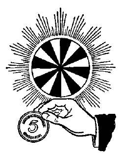 Konstnären sätter det i roterande rörelse och efter något ögonblick blir ett mynt synligt mitt på kortet.