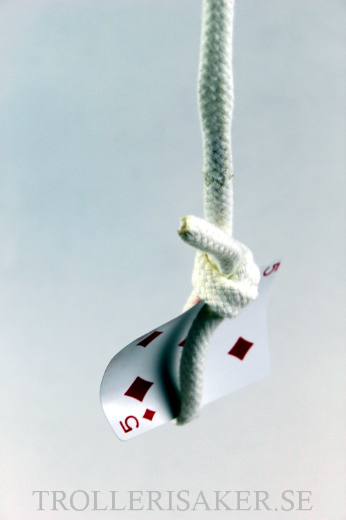 När repet höjs ovan hatten följer ett av spelkorten med upp, fastknutet vid nederänden, när kortets rätsida blir vänd mot åskådarna befinns det vara just det tidigare dragna kortet.