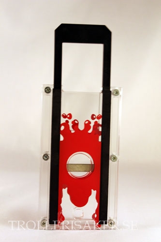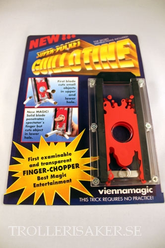 Nu "erbjuder" du åskådaren att stoppa in sitt eget finger i det större hålet i giljotinen.