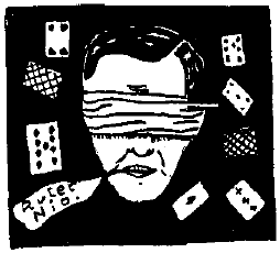 Sedan ögonen förbundits med ett bandage, en ogenomskinlig serviett eller liknande, överräckes till konstnären en väl blandad kortlek.
