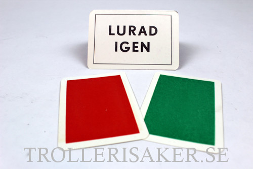 När duken lyftes från bordet, synes endast ett vitt kort, å vilket är tryckt med stor stil ordét "Lurad".